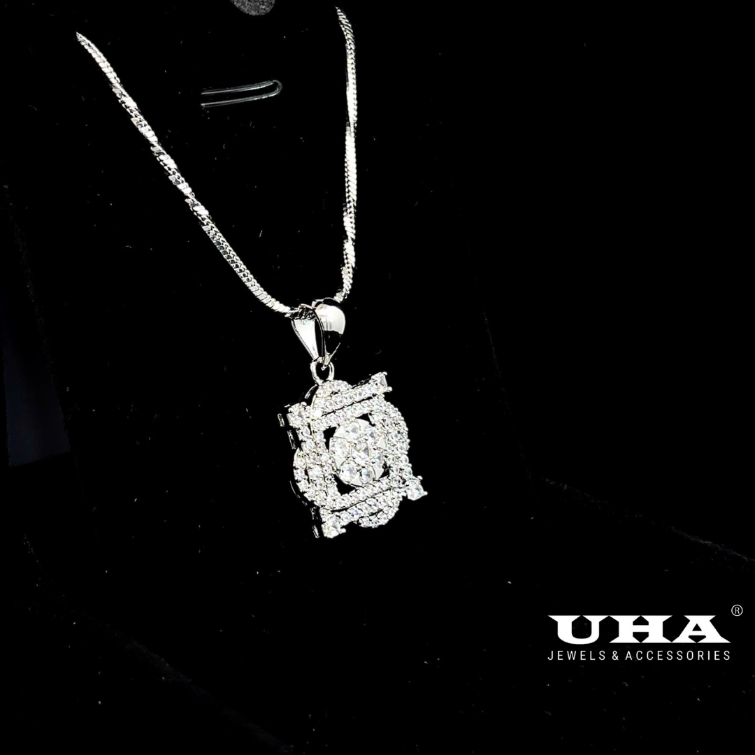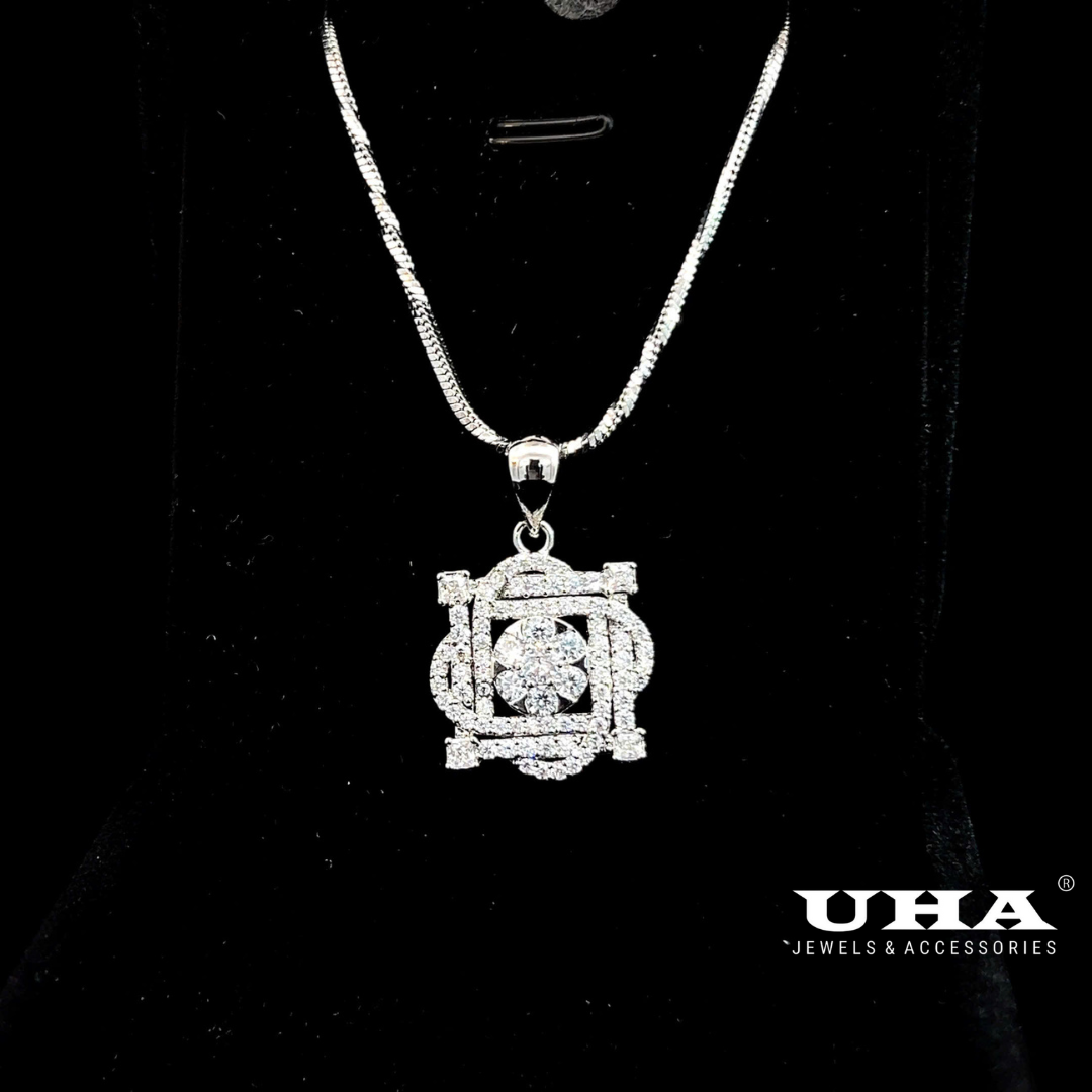 Thông Tin Sản Phẩm:"Mặt và dây chuyền đính đá CZ cao cấp thiết kế tinh tế nhẹ nhàng UHA M1675 "