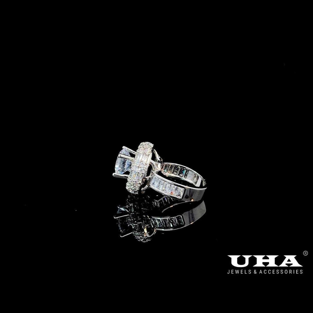 3. N1275 Nhẫn nữ đinh đá CZ kết hợp đá bagutte cao cấp sáng lấp lánh UHA Women
