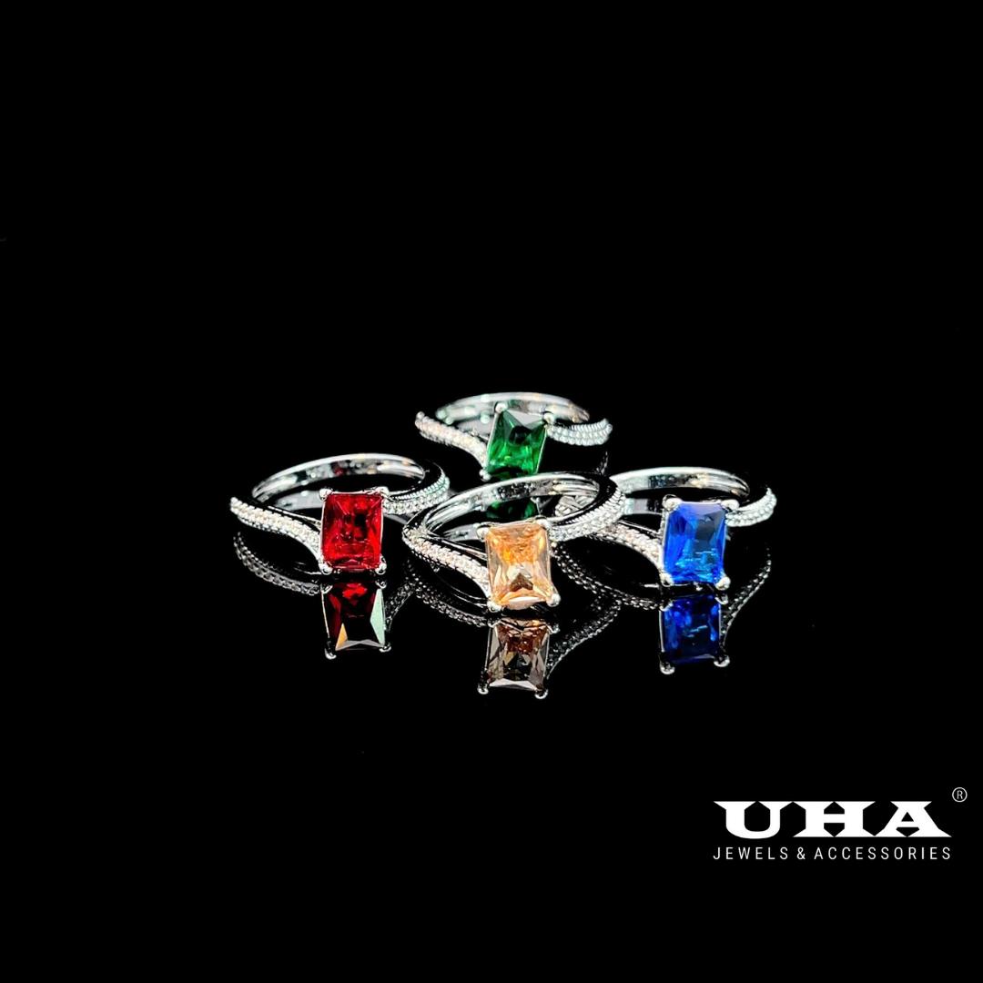N559 Nhẫn nữ đính đá màu phong thủy cao cấp sáng lấp lánh UHA Women