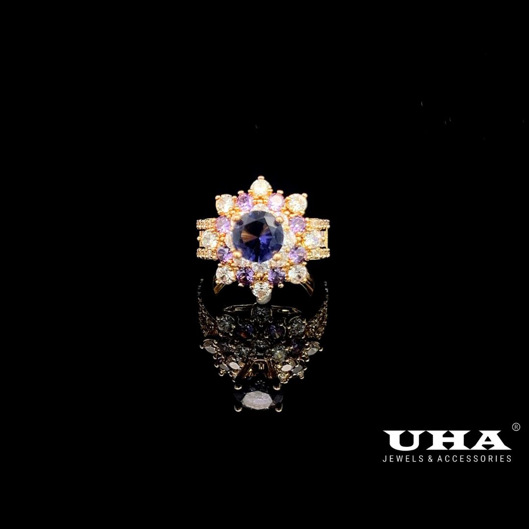 3. N559 Nhẫn nữ đính đá màu phong thủy cao cấp sáng lấp lánh UHA Women
