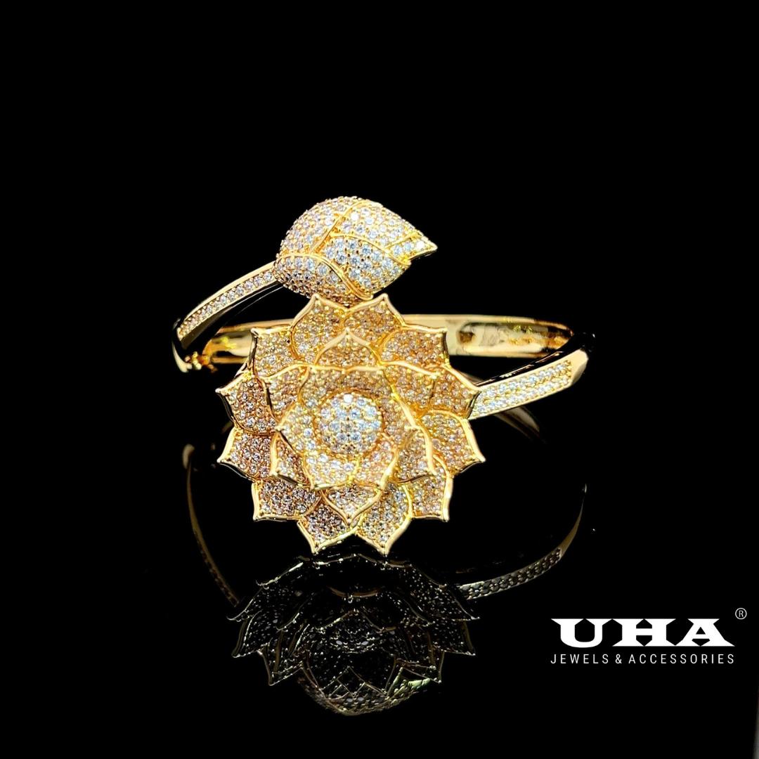 3. V433 Vòng tay nữ thiết kế kiểu hoa sen đính đá sáng lấp lánh UHA Phụ Kiện